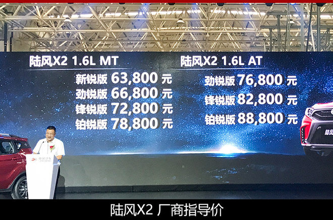 陆风此前已多次展示旗下全新小型SUV——陆风X2,新车将作为该品牌全新入门级SUV。网通社从陆风汽车官方获悉,陆风X2正式上市,新车共推出7款不同配置的车型,售价区间为6.38-8.88万元。陆风X2采用更加“原创化”设计风格,整体质感在同级车型中颇具竞争力。动力方面,新车将搭载一台1.6升自然吸气发动机。