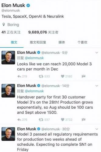 不过就在前一天夜里,堪称真人版钢铁侠的马斯克已经提前为看客们打了一支强心剂,连发三条推文,确认Model 3的量产时间,并称本年底的月产量将达到20,000辆。