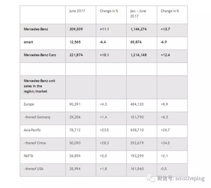 具体来看,奔驰6月份209309辆的销量和11.1%的同比增长以及第二季度583649辆的销量和11.6%的同比增长都是同期最佳。