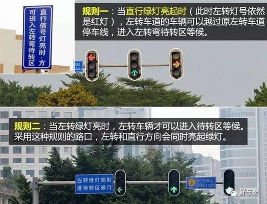 由于左转弯待转区占用了不少十字路口中央区域,因此,进入左转弯待转区是有规则限制的,以避免待转区车辆影响另一方向直行车辆通行。进入左转弯待转区的规则有两种:
