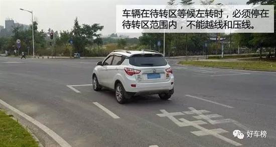 如何解决这种“犯傻”或“添堵”问题呢?一方面,驾驶员应有意识地了解各种交通标线的功能,驾照到手后也要记得适时“补课”;另一方面,很多设置了左转弯待转区的路口,都会同时设置了提示牌,告知驾驶员何时能进入待转区,只要我们留心一些就能看见。