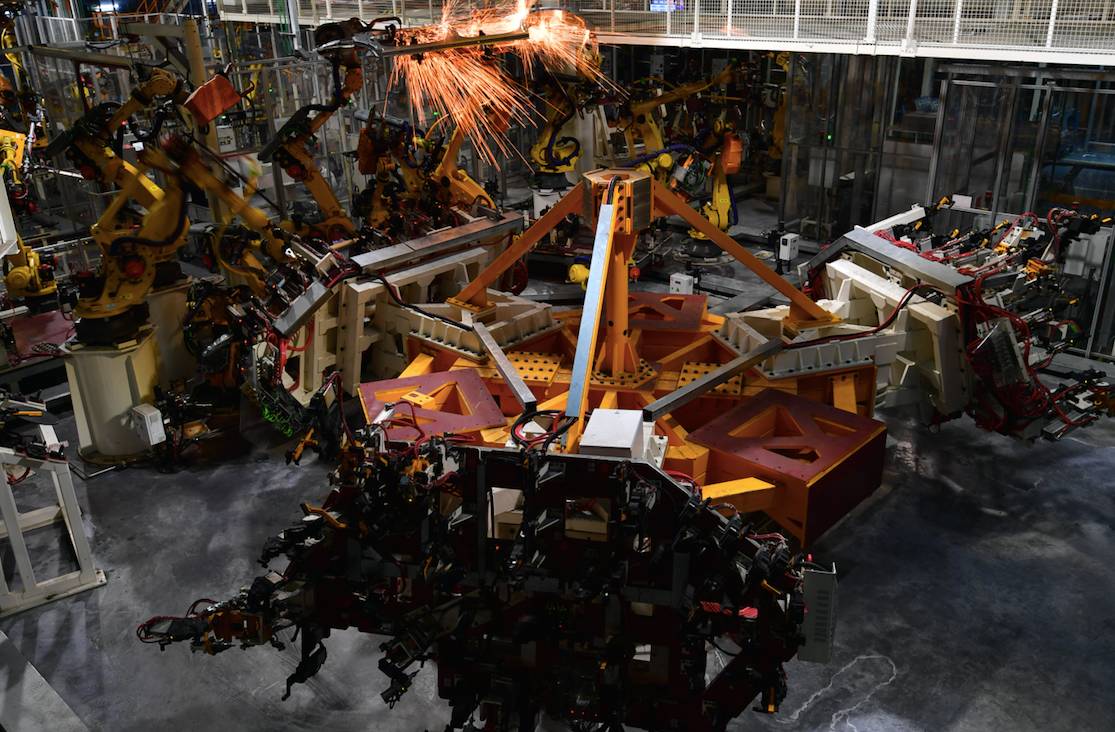整个工厂拥有焊装和涂装两大“100%机器人车间”,超过500个不同种类的机器人同时挥舞臂膀。其中,采用442台PSA V9.0标准的机器人,在1200米高效焊接生产线上,实现了焊装自动化率100%。68台德国杜尔机器人实现了车身内外的100%全自动喷涂,完成单车喷涂仅需90秒,且减少面漆材料10%的损耗。此外,总装车间内应用的固定机器人抓取玻璃涂胶技术,可以自动选择涂胶轨迹,准确率达100%。
