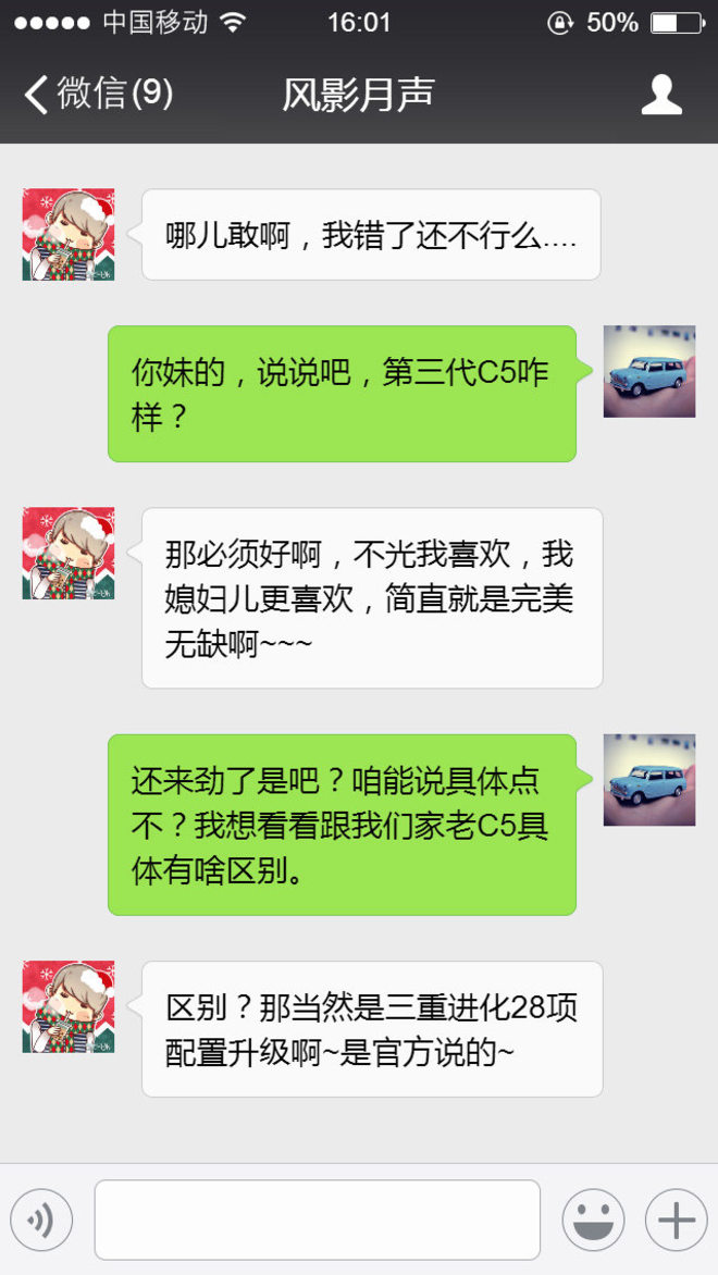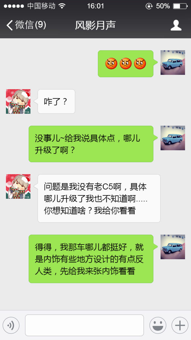 有一种感动叫穿越千年的爱恋,有一种情怀叫你怎么换代我都情有独钟。我身边就有一个对法系车雪铁龙C5“忠贞不二”的好哥们儿,他自2009年C5在国内刚刚上市之时就相中了这款车作为它人生中的首台座驾,并在4年之后又更换了14款C5。他对C5的这份爱、这份执着真可谓是惊天地泣鬼神。然而就在几天前,一位在朋友圈里“暴晒”第三代C5的好友引起了他的注意,令这位C5的“死忠粉”又一次萌生了换新的想法,于是便开始蠢蠢欲动了起来.....