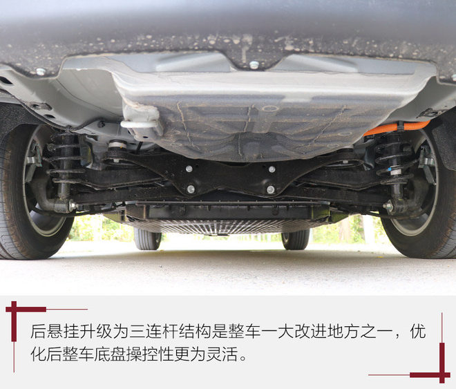 悬挂方面,北汽EU400将后悬挂改为了三连杆后独立悬挂,整车的灵活性相比之前的EU260车型有一定的提升。