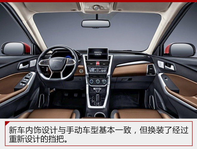 内饰方面,新车中控台及座椅采用了棕色和黑色双色的搭配,同时造型层次感较强,顶部配备有9英寸悬浮式液晶屏,支持手机互联和行车记录仪等功能。新车与手动挡车型最大的不同是更换了全新的挡把设计,相比现款车型更具质感。