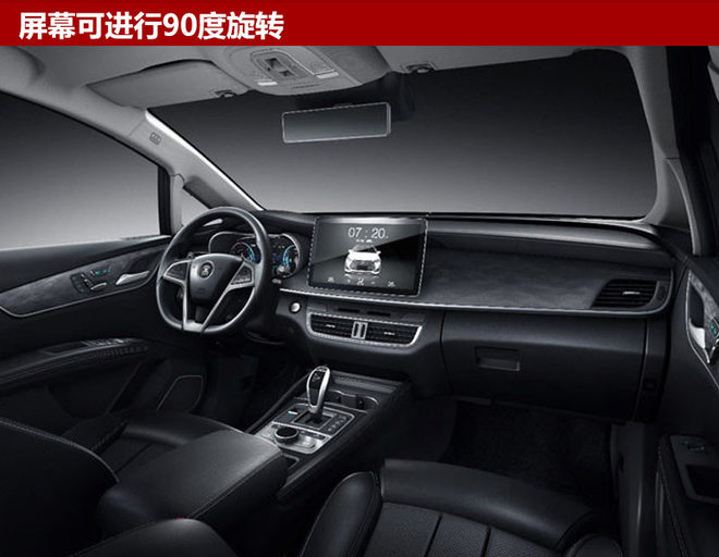这款MPV车型采用纯黑色内饰,配以木纹材质装饰,整体提升内饰豪华程度。新车使用大量软性材料覆盖,多功能方向盘配以银色饰条更显精致,前方两个圆形仪表中间显示屏可显示丰富的车辆信息及动态;中控区域配备有“巨大”的显示屏,多媒体控制按键集成在屏幕里,操作更加便捷。此外,这块屏幕可进行90度旋转。
