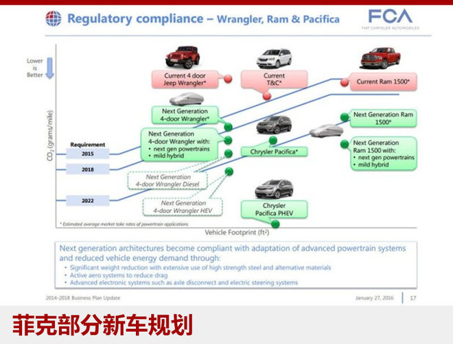 2016年初菲亚特克莱斯勒集团曾公布一份未来部分新车规划,提到新一代牧马人将采用轻量化设计,换装全新发动机并推出混合动力车型,预计于2017年正式推出。