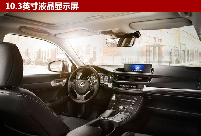 新雷克萨斯CT 200h内饰采用全新设计,功能区域划分清晰,层次分明。中控台配备10.3英寸液晶显示屏与滑鼠式人机交互系统,多功能方向盘采用真皮包裹,后方全新设计的仪表盘配有行车电脑显示屏,内饰质感得到大幅提升。