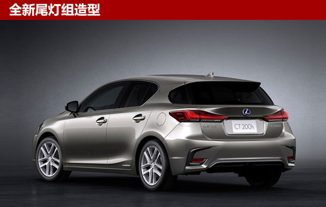 外观方面,新车采用最新家族设计语言,前脸纺锤型进气格栅造型更加立体,搭配两侧刀锋式LED日间行车灯,整体设计更加激进;引擎盖隆起的线条与中网造型相结合,延伸至A柱,提升车头造型整体感。新雷克萨斯CT 200h尾部线条平直且富有变化,全新设计的尾灯组内部融入LED灯带,下方保险杆两侧“C”字造型,与前脸相呼应。