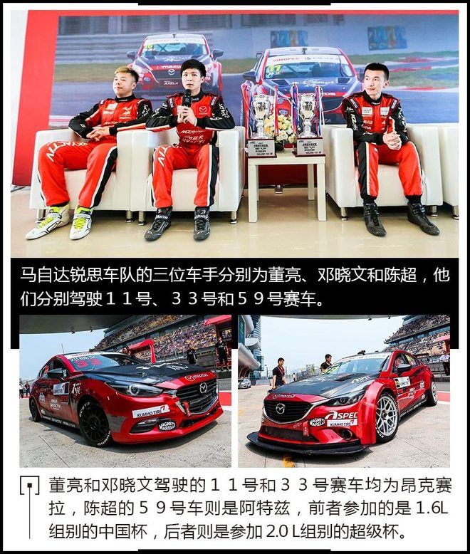 马自达参加CTCC赛事已经有两年了,不同于许多主流的厂商车队,马自达是以向锐思俱乐部提供资金和技术支持来参赛的一只队伍。相比起实力更加雄厚的厂商车队,马自达锐思车队显然没有太多先天优势,但这种勇于挑战自我的进取精神是车队最宝贵的财富。