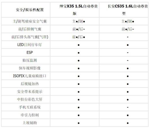 配置对比,绅宝X35超越同级,长安CS35主流水准;