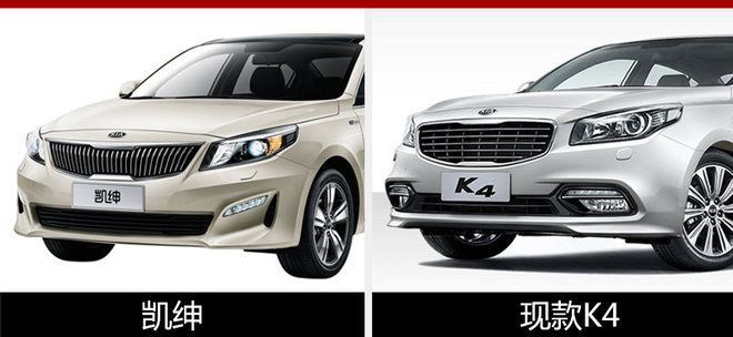 东风悦达起亚凯绅采用了重新设计的虎啸式进气格栅,造型更加细长,结构也由现款的横幅式变为直瀑式,两侧为HID氙气大灯。前杠两侧的LED日间行车灯也进行了调整,并加入“进气口”设计。