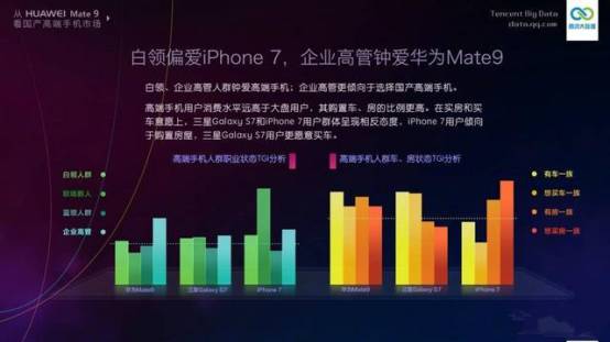 最近一份“腾讯大数据”不小心火遍了整个网络,本身这份数据内容并没有多少人去关注,全凭一句“穷的只剩下iPhone”了成为亮点。上面详细地说明iPhone用户基本以年轻人,职场新人用户构成,他们没车没存款等等。。。而华为Mate9则以企业高管为主属于高收入人群。