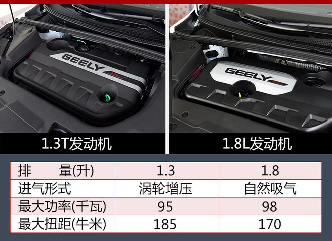 帝豪GS智联版车型将沿用现款车型的动力总成,搭载1.3T/1.8升自然吸气发动机。其中1.3T发动机最大功率为95千瓦,峰值扭矩为185牛米;1.8升发动机最大功率为98千瓦,峰值扭矩为170牛米,与发动机匹配的是6速手动或6速双离合变速箱。(图/文 网通社 刘宠)
