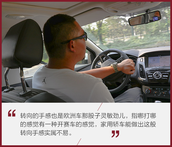 转向的手感属于很灵敏的调校,基本上手上打多少车头就进行多少的转向,城市中并线车尾的姿态会跟随车身一同进行转动,没有丝毫拖沓的感觉。