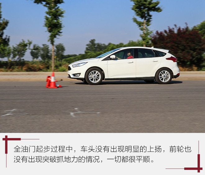 加速过程全新福克斯表现的比较平顺,无论是从曲线图还是车内的主观感受,即便是采取憋转速至2000转起步的方式,车头也没明显地抬头现象,加速过程也都是毫无波澜的状态。
