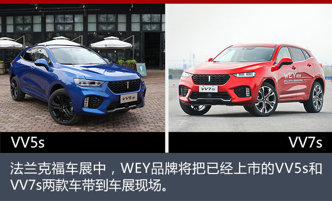 WEY品牌还将带来基于VV7s、VV5s开发的全新动力升级产品VV7s-Hi4、VV5s-Hi4车型,能进一步满足越来越严格的排放法规要求以及消费者对产品性能的需求,其中Hi4车型有望为电动四驱强混车型;WEY品牌旗下首款插电混合动力车型P8届时也将来到法兰克福车展现场。