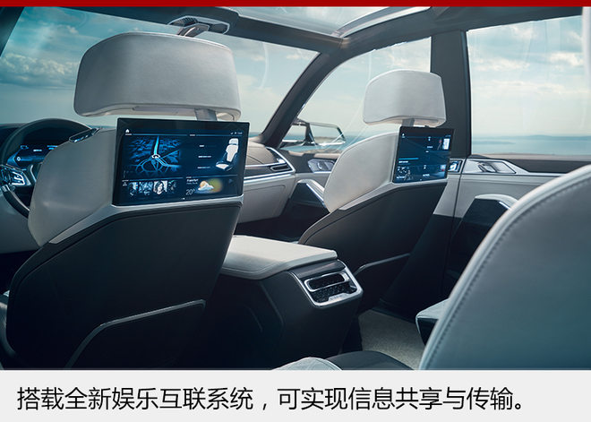 全新宝马X7为第二排的两个独立座椅提供了配备触控操作功能的乘客娱乐系统,乘客可以在车内通过高度个性化的方式,获取娱乐或办公数字服务,让旅途变得更加舒适、有趣、卓有成效。此外,信息还可以与车内其他乘客共享,比如通过手势将歌曲发送到车辆音乐播放器;将有意思的文章共享给旁边的乘客;或者将地址从电子邮箱发送至车辆导航;通过车门及仪表台上的LED灯光变幻效果来渲染前后排屏幕间的信息交互。(图/文 网通社 马云龙)