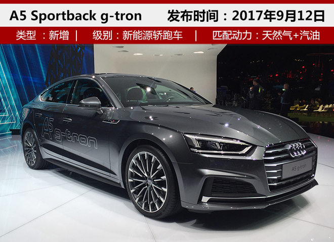 A5 Sportback g-tron定位为新能源混动轿跑车,整车造型偏向年轻消费群体。车身侧面翼子板处增有专属标识,全新造型运动铝合金轮辋搭配修长的车身更显时尚。车头部分运用家族化格栅的设计,镀铬亮条与保险杠下方宽大导气口搭配更显得运动。