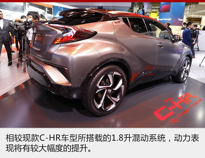 丰田新款普拉多 (配置|询价)已经在法兰克福车展中正式亮相,除普拉多之外,丰田还在本届车展中发布了一款全新概念车——C-HR Hy-Power混动概念车。网通社从美国媒体motor1获悉,丰田C-HR Hy-Power概念车保留了现款C-HR车型的整体设计,并对部分细节进行调整;动力方面,相较现款C-HR所搭载的1.8升混动系统,新车的动力表现将会进一步提升。