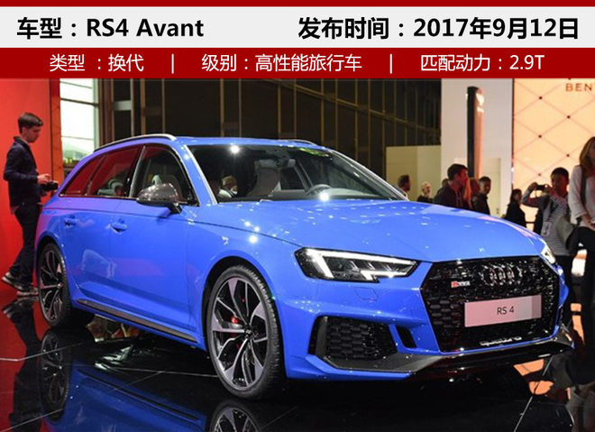 全新一代奥迪RS4 Avant是RS4 家族的第四代车型,在外观造型和动力搭配上有着突破和改变。其独特的LED头灯光源夜间辨识度较高,蜂窝状进气格栅进行熏黑处理后整体显得非常激进。另外,这款全新高性能旅行车车顶、两侧反光镜的配色与车身颜色反差形成鲜明对比。