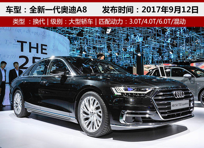 A8是BBA三大品牌后期崛起的一款大型豪华轿车,目前已历经4次换代,全新一代车型已在此前的奥迪品牌峰会上正式发布。全新一代奥迪A8最大亮点在于成为了首款搭载L3阶段自动驾驶技术的量产车型,在此次法兰克福车展上还为现场观众展示了全新自动驾驶技术。