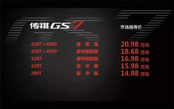 本次发布会正式公布了GS7、GS3 的市场指导价。GS7和GS3价格区间分别为14.98万元—20.98万元和7.38万元—11.68万元。随着GS7、GS3新双子星加入,广汽传祺将正式拥有从A0级到C级的SUV全产品矩阵,满足更多元化的市场需求,更贴近都市核心客群,持续为传祺品牌向上赋能加码。这将有力推动今年广汽传祺50万辆的销量挑战目标,同时,传祺也将在SUV、轿车、MPV和新能源领域全面发力,争取2020年实现100万辆产销目标。