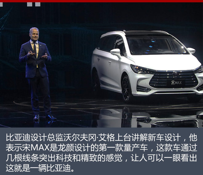 前奥迪设计总监艾格加盟比亚迪后,领导比亚迪设计团队将新的设计理念和设计语言融入其全新产品中,并逐步形成了比亚迪特有的造型语言和风格,宋MAX就是艾格领导下设计的首款量产产品。