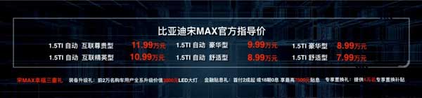 9月25日,比亚迪专为中国主流家庭量身打造的“大美7座车”——宋MAX在北京水立方震撼上市,售价7.99万—11.99万元,树立了10-15万级家用7座车品质标杆。现在购车的用户还可享幸福三重礼,购车轻松无压力。