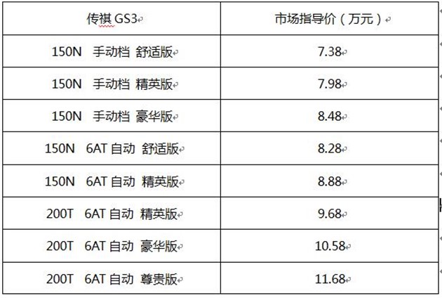 GS3搭载传祺第二代200T/150N高效发动机,其中200T引擎在1500转即可迸发出高达202N?m的峰值扭矩;匹配全新爱信6速手自一体变速箱,换挡平顺,超低油耗领先同级。安全方面,GS3应用GAC 2.0高强度车身,符合严苛北美SUV车顶抗压标准,并有博世第九代ESP、直接式TPMS智能胎压监测与6安全气囊等同级领先主被动安全系统,让你自信驾驭飞驰,畅享自如驾趣。