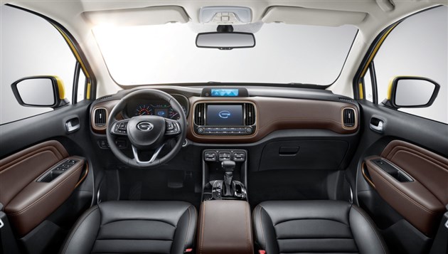 传祺GS3内饰采用横向悬浮式立体设计,造型简约现代,拓展视觉宽度,使小空间拥有大空间的视觉感受;“跑道圆”元素贯穿内饰设计,视觉效果更加浑然一体,彰显着运动与年轻;T字形镀铬换挡杆控制区,辅以镀铬饰条及皮质包边,副仪表板大面积钢琴烤漆面板,打造出高品质高质感的内饰氛围。
