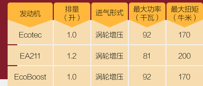 从表中数据可以看出,无论那个排量,新一代发动机的动力参数都比上一代有这明显的提升。此外据官方称,1.0T发动机相比1.5L发动机减重24kg,燃油经济性提升10%,综合工况油耗下降0.5-0.8L/100km;而1.3T发动机相比1.4T发动机减重25kg,油耗下降5%。
