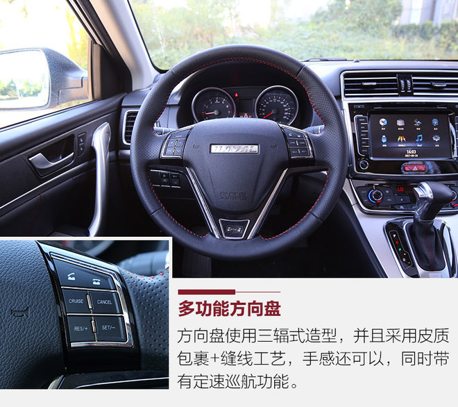 哈弗M6的内饰设计不如外观那样富有冲击力,整体偏向于居家简约的风格,不过在实用性方面并不差,虽然用料受成本限制不算出色,但是良好的拼装工艺在很大程度上弥补了这一缺陷。