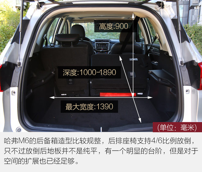 SUV在装载方面相比轿车有不小的优势,M6的后备箱应付日常使用真得是足够了,除非你要用来它来拉西瓜什么的;储物空间的表现平平淡淡,不算出色,但也够用,跟大部分车型的表现一样,只不过全车只提供了一个USB接口确实有点少,即便加上点烟器那个12V电源,最多也就两个。