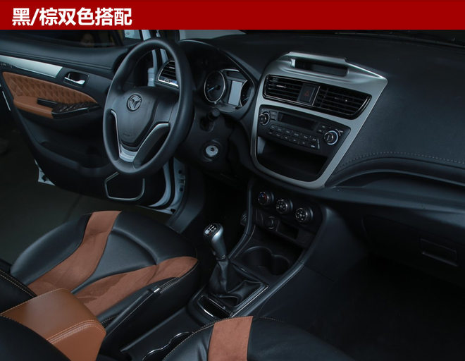 新车内饰整体层次感较强,三辐式方向盘前方配有双圆盘式指针仪表,中间显示屏可显示车辆信息;中控台中央采用大面积银色饰版,中间配有多媒体系统,下方为三个空调控制旋钮。此外,周末版车型采用双拼色麂皮座椅,富有层次感。配置方面,新车带有 “Follow me home”大灯延时关闭技术、高强度笼式车身、ABS+EBD系统、EPS电动助力转向等配置。