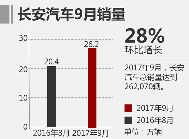 2017年已悄然过半,在过去的9个月中,长安汽车一直保持着良好的销量增长率。近日,网通社从长安汽车官方获悉,刚刚过去的9月份中,长安汽车共售出262,070辆,环比增长28%,其中CS系列总销量则是突破了6万辆,实现了环比增长30%,而旗下的MPV车型同样也保持增长的态势。该品牌取得如此好的成绩也为今年接下来的销售工作打实了基础。