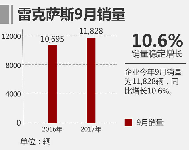 雷克萨斯进入2017年后在华销量一直保持高速增长态势,继今年8月创下11,100辆单月销量纪录后,雷克萨斯9月再创新高,单月销量达11,828辆,较去年同期增长10.6%。其中,智·混动车型9月的销量达3,312辆,占当月销量的28%。展现了雷克萨斯混动车型在产品力上的优异表现。