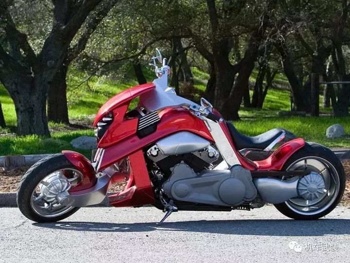要是说到招摇,谁能和TRAVERTSON V-REX相比。很多时候,我们在车展或是在网络,看到所谓的概念车,天马行空的外型,不过V-REX要告诉你,原来梦中的怪兽也是会跑入真实的世界的。事实上,V-REX本来就是一位澳大利亚设计师的疯狂设计,后来被美国的车厂将这疯狂的主意实现。动力采用的是H.D. V-Rod的1250cc心脏,夸张的前摇臂配置及六眼头灯的设计,以及后轮280/30 R18的超巨幅轮带,再再都让你有超脱现实的视觉轰炸。在台湾,爱玩车的周杰伦也有一台,相信周董骑着这台车在路上,你绝对不会忽略他的存在。