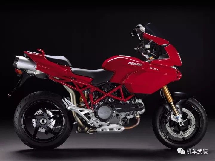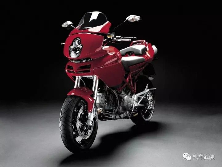 有二轮界法拉利之称的杜卡迪,在2001年推出这台外型特异的多功能车。如果你看惯了当时的杜卡迪 996、998,很难相信这是同一家公司的作品。高阔的把手,850mm的座高,根本是一款歧视身高的车款。更绝的是整流罩的设计,由上而下分成的三段,第一段是风镜,再来是头灯,最下面则是半截整流罩延伸至油箱,搭上镂空的气孔。好看与否,见仁见智,但某个角度看来,还真像车头包覆着半个罐子的感觉。车尾双出粗壮的排气管,搭配杜卡迪看家本领的L2 Desmodromic引擎。先不论不友善的车高及怪异外型,这台杜卡迪可是出了名的好操控,是一台可以天天骑去上班的杜卡迪。