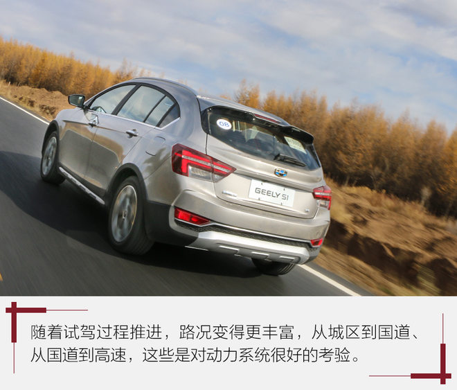 除了高速行驶中发动机运转的声音有些明显外,行驶中这辆车以优异的动态感受完美的征服了驾驶员,从它的动力输出到底盘的支撑再到灵活舒适的转向等反面看,吉利S1都是一款非常合适驾驶的跨界SUV。