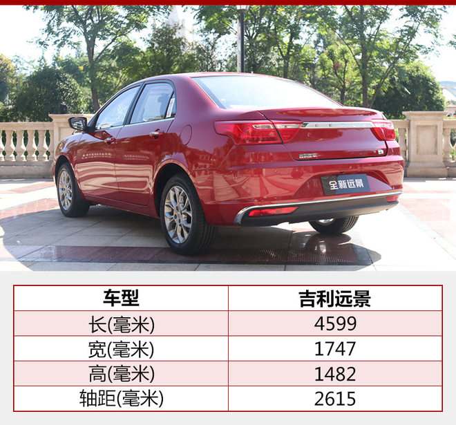 新远景的尾部同样变化不小,分体式尾灯组通过设计与中间的镀铬格栅想融合,拉伸了视觉宽度。此外金属饰条包裹的下包围防刮材质覆盖面积有所加大,增添了一定运动化效果也更具格调。新车尺寸相较现款车型有所加大,长宽高分别为4599*1747*1482毫米,轴距为2615毫米。