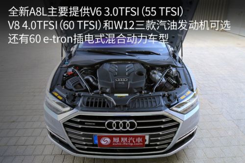 全新A8L主要提供3.0TFSI(55 TFSI)、4.0TFSI(60 TFSI)和W12三款汽油发动机可选,并提供可以无线充电的60 e-tron插电式混合动力车型。目前A8L全系标配8速手自一体变速器和全时四驱系统。