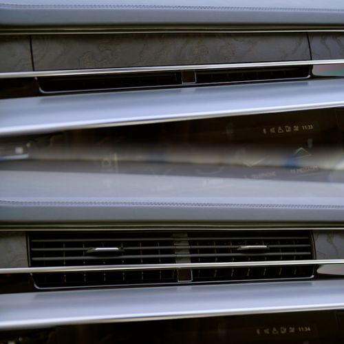 作为科技感的一部分,前排空调出风口也采用了可以开闭的设计,启动全新A8L,随着实木的装饰盖缓缓打开,空调出风口也随之出现,相对之前部分高档车采用的此类设计,全新A8L的结构更加复杂,打开盖板之后,出风口结构还会伸缩出来,这无疑也是个“炫技”的配置。