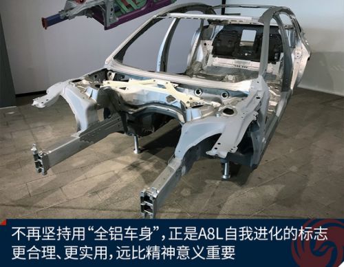 此外,全新A8L给我的一个很强的进化信号便是它放弃了“全铝车身”,要知道这在之前可是A8L的招牌技术,但随着时代的变化,奥迪也为A8L打造了更加强悍的车身,在铝制车身的基础上,增加了高强度钢、混合型碳纤维等材质,能提供更合理、更可靠的支持,从这一点就能发现奥迪自我革命的决心。