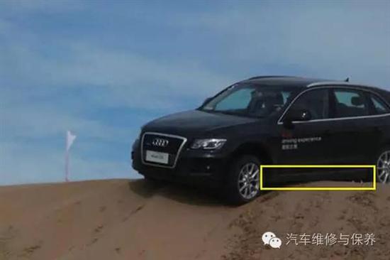 相信小部分的人知道,如果车子的底盘不是很高的话,通过坡顶时是很容易托底的,咣当一声,车子就卡那里了,而下坡的时候要注意减速慢行,因为前保险杠很容易碰到地面。