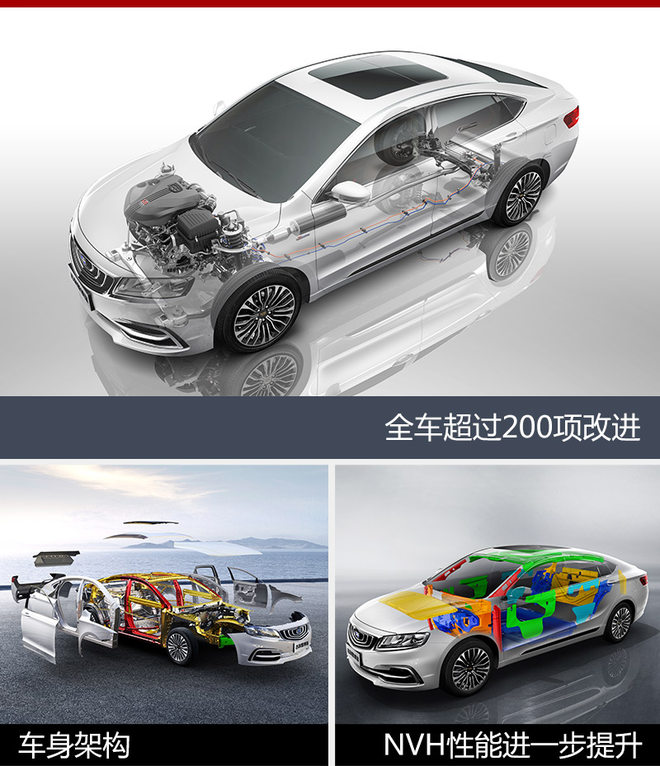 作为吉利的旗舰车型,新博瑞进行了200多项的优化升级。简而言之就是搭载了全新的第二代G-POWER发动机,并在底盘系统、NVH等方面进行了全新优化升级。以底盘悬架为例,新博瑞依旧采用前双叉臂式+后多连杆式的悬架组合,但通过在悬架摆臂等零部件上使用铝合金替代了铸铁材料,使得底盘减轻32公斤,整车减轻多达75公斤。而减重对性能带来的提升也在试驾中得到了体现。