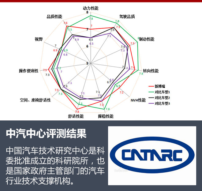 而出于对产品的自信,吉利将新博瑞交由中汽中心进行评测,对比车型分别为德美日系的主销车型。而评测报告显示,博瑞的所有项目均处于中上的水平,而像NVH性能、舒适性能、操作便利性和品质性能等方面,这款车甚至取得了第一的分数。