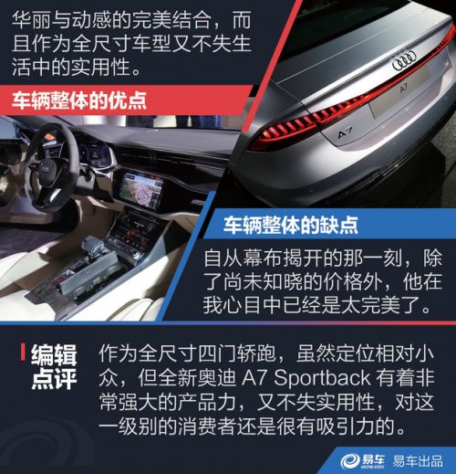 全新奥迪A7 Sportback几乎可以说紧随老大哥A8L的脚部,把自家能用上的黑科技都用上了,坐入车内,不仅能感受到豪华品牌与生俱来的档次感与舒适感,各类科技配置带来的未来感也是油然而生。