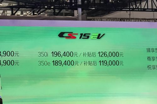 易车北京报道 10月19日,在长安汽车新能源战略发布会上,长安CS15 EV车型正式上市。新车是基于长安旗下小型SUV——CS15打造的纯电动版本,其续航里程可达300km,共推出2款车型,售价区间为18.94-19.64万元。各款车型的售价请见下表: