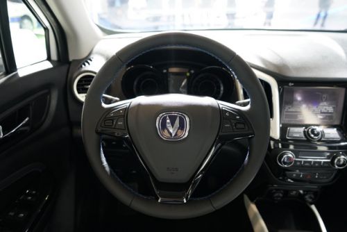 内饰方面,新车的整体造型与CS15燃油版车型基本保持一致,只不过采用全新的旋钮式换挡替代了原本的挡把,且在周围装饰有象征新能源的蓝色装饰。